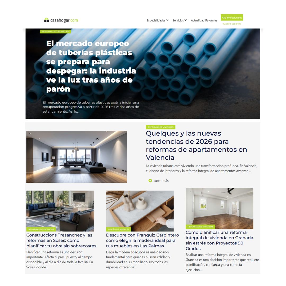 Portal especializado en vivienda, decoración, reformas y sector construcción, con contenidos dirigidos a empresas, profesionales y usuarios interesados en el entorno del hogar. Reúne información práctica y tendencias del sector, ofreciendo a marcas de materiales, equipamiento y servicios para la vivienda un espacio de comunicación alineado con su mercado.